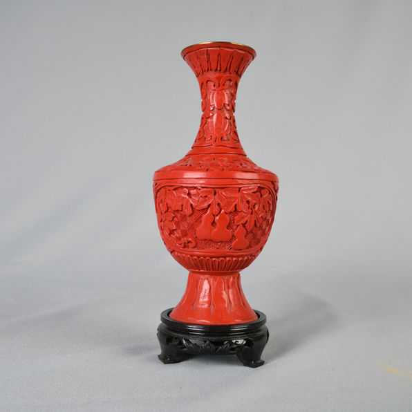 Lacquer is the sap of a tree that grows wild in all parts of China. Sap has been tapped in China since around 3000 BC. The sap resin is extracted, boiled and filteredbefore application. The red colour is achieved by using cinnabar (mercuric sulphide) as a colouring agent. The lacquer is applied in thin layers to a core, usually made out of wood, brass, silver, gold, or other materials.